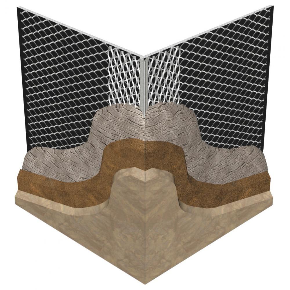 The expanded flanges are flexible and can compensate for most irregular surfaces providing even grounds and straight external corners. The expanded steel near the nose of the corner bead provides multiple plastering and stucco keys allowing for reinforcement and strength of Portland cement stucco where it is needed the most. In addition to reinforcing corners, the #1A Corner Bead can also be used as a return accessory around any recessed opening or as a corner for spray-applied fireproofing when the column of bead is boxed in.