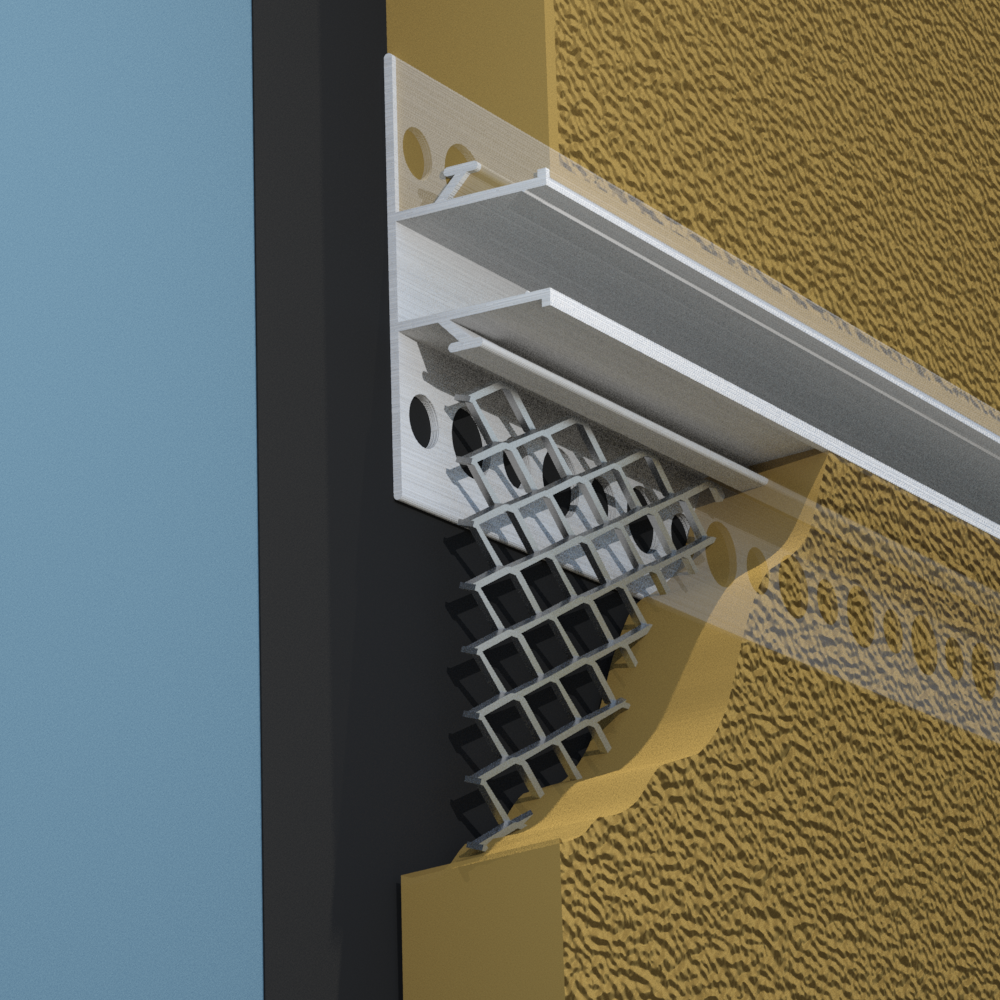 Create 1/4" to 4" reveals in stucco and plaster surfaces. Clips are provided for alignment and as a base for sealants. Factory fabricated intersections of crosses, T's, L's, inside and outside corners, and end closures of channel reveals are available to form clear channels.