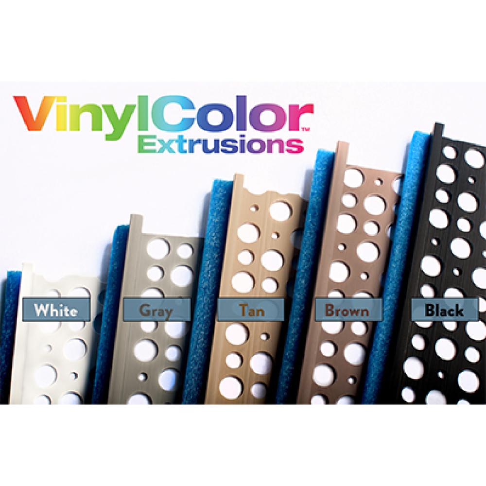 In addition to our standard white vinyl accessories, we’ve taken the lead in stocking vinyl accessories in tan, brown, gray and black that perfectly complement common mortar colors.