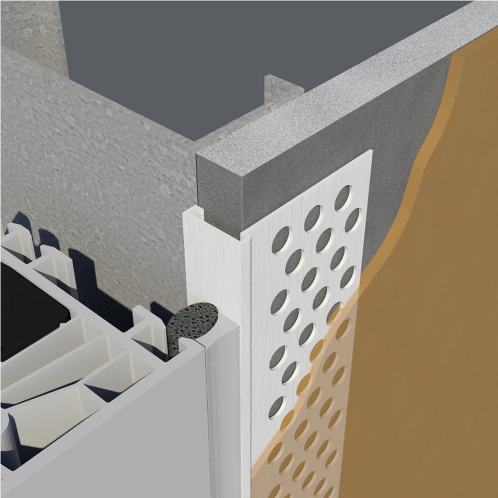 Designed to protect the raw edges of the board in Direct-Applied Exterior Finish Systems (DEFS). Large perforations allow the base coat mixture to easily flow through and bond to the substrate. Caulk all intersections, butt joints, ends, and corners at the time of installation.