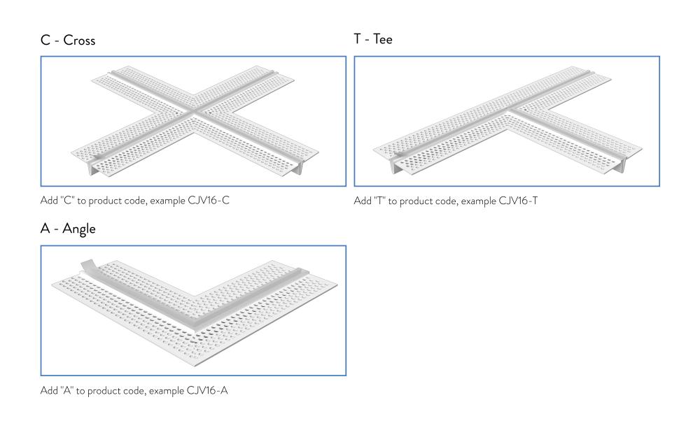 It is recommended that additional 10ft. control joint material is ordered along with all intersections to ensure seamless connections. Caulk all intersections, butt joints, ends and corners at time of installation. All factory fabricated control joint intersections are made-to-order.
