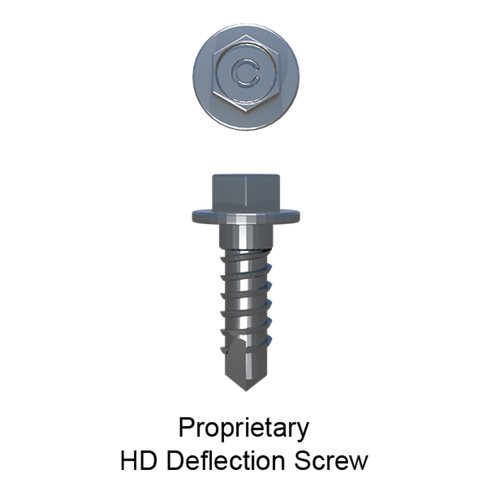 Proprietary HD Deflection Screws: Many of the ClarkDietrich deflection clips include our proprietary deflection fasteners that have been specifically designed to provide friction-free deflection. These fasteners eliminate drag, binding or resistance that can often occur with common fasteners. For the FUS clip, we supply a heavy duty version of the deflection screw. Clark Dietrich's proprietary HD deflection screws are utilized on the Fixed Universal Slip clip only when used for a deflection condition.