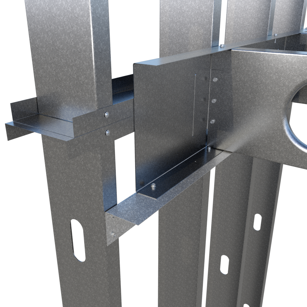 Non-structural corner angles used to connect, reinforce or secure metal stud framing in various drywall applications.