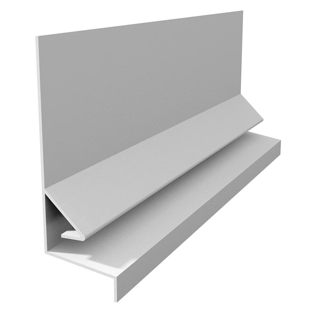 Designed to provide a flashing transition from stucco, siding, stone over a brick ledge, at a wall transition.