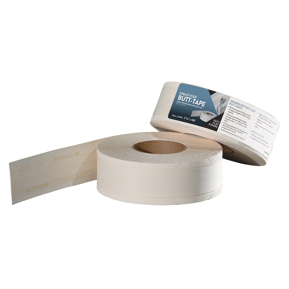 Butt-Tape is twice as fast as conventional tapes and two times stronger than paper or mesh tape. No compound required over laminated area of tape - just skim coat edges. Apprentices and professional tapers can achieve the flattest butt-joints possible. Leaves butt-joints virtually non-noticable.