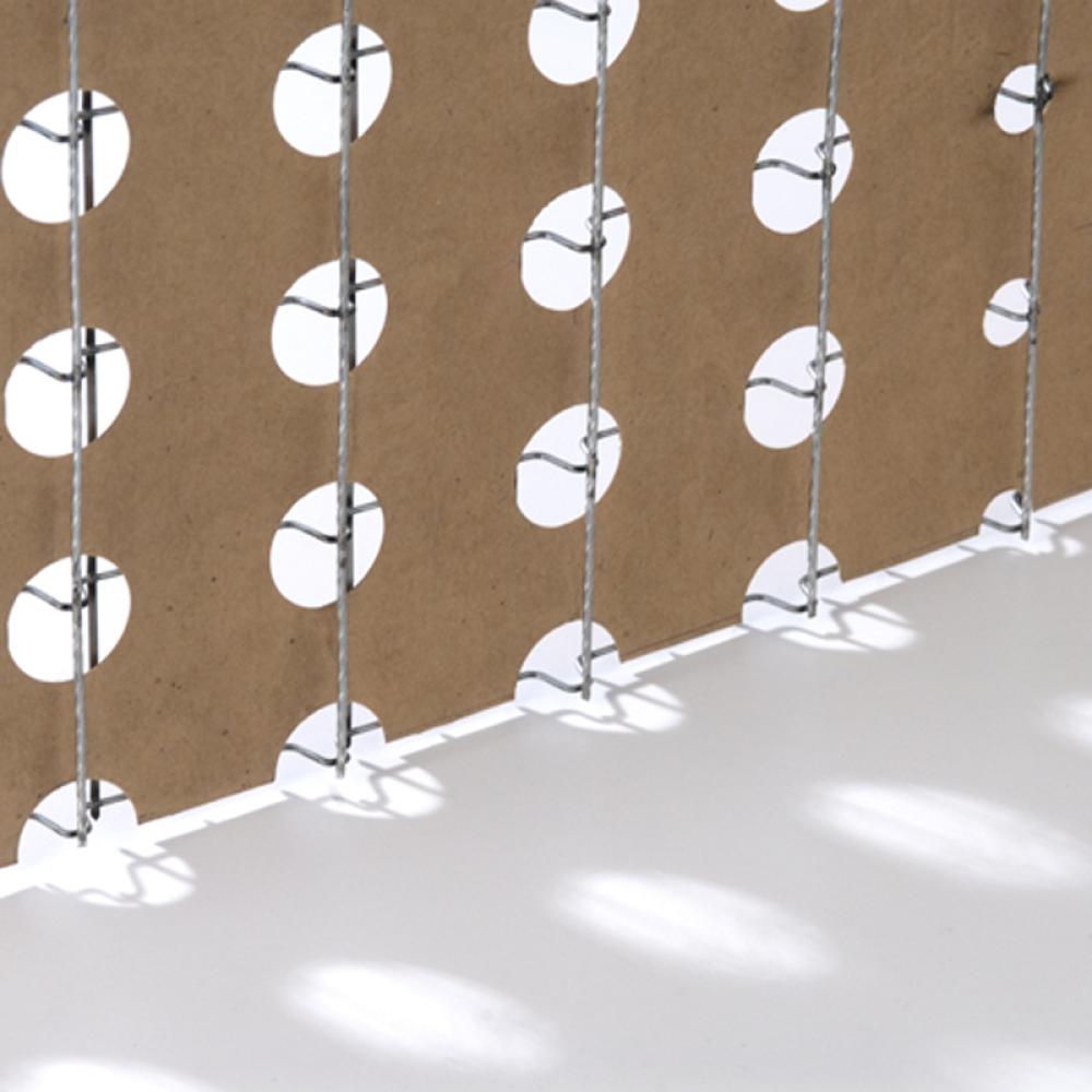 V Truss for Walls & Ceilings combines a series of 3/8-inch 'V' shaped trusses, and heavy perforated draft paper that is sandwiched between the primary sheet and back layer of stiffening wires. The sheets are lightweight, yet strong and easy to cut. Attachment points are identified on the printed kraft paper for ease of installation.